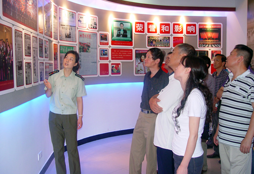 圖為:參加活動(dòng)人員參觀史料陳列室,聽取“二妹子”民兵班第14任班長陳金萍的現(xiàn)場講解。