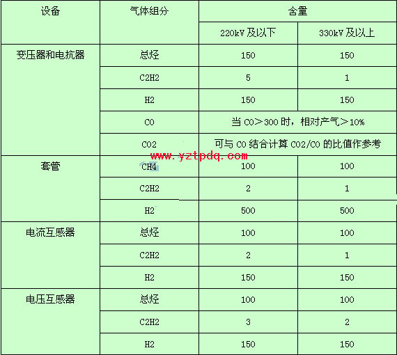 表2-3 運(yùn)行中變壓器、電抗器和套管油中溶解氣體含量的注意值
