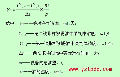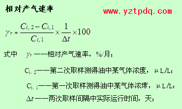 實(shí)踐證明,故障的發(fā)展過程是一個(gè)漸進(jìn)的過程,僅由對(duì)油中溶解的氣體含量分析結(jié)果的絕對(duì)值很難確定故障的存在和嚴(yán)重程度。因此,為了及時(shí)發(fā)現(xiàn)雖未達(dá)到氣體含量的注意值,但卻有較快的增長(zhǎng)速率的低能量潛伏性故障,還必須考慮故障部位的產(chǎn)氣速率。