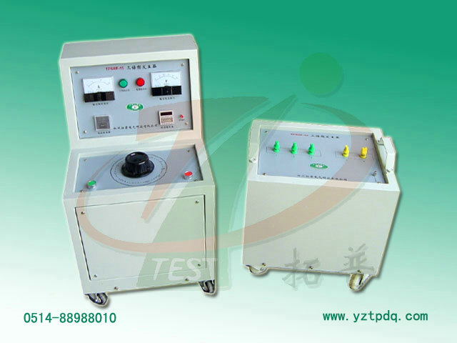 三臺單相變壓器一次側(cè)接成星形,二次側(cè)接成開口三角形,在一次側(cè)加上對稱的三相正弦波電源時,并升高電壓讓鐵芯磁路飽和,使鐵芯中磁通所含三次諧波的成分增多,相應(yīng)在鐵芯線圈上感應(yīng)三次諧波電壓也增高。由開口三角形的發(fā)生器二次側(cè)輸出的這個150赫茲(三倍工頻)感應(yīng)電壓即作為三倍頻試驗電源電壓。