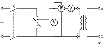 電壓互感器空載勵(lì)磁特性試驗(yàn)接線如圖1-4所示。現(xiàn)場(chǎng)試驗(yàn)時(shí),電壓互感器高壓側(cè)開(kāi)路,低壓側(cè)通以額定電壓,讀取其空載電流及空載損耗。