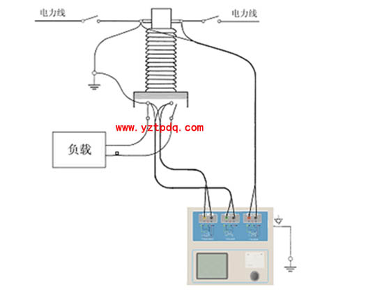 圖1-4 TPHGC-B變頻式互感器綜合測試儀對GIS(SF6)開關上的CT測試時的接線方式