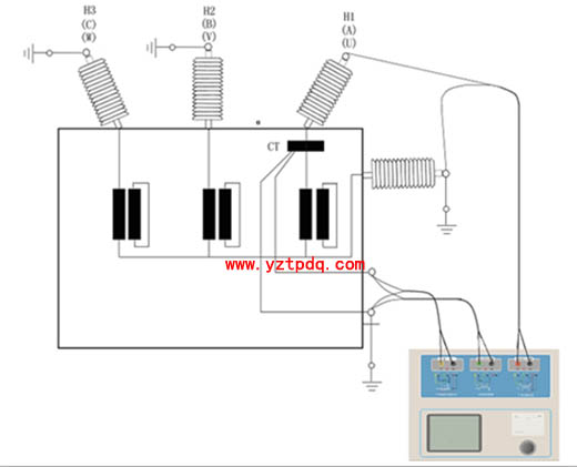 注意:一次端子H1不能接地,否則一次側都接地了,則測試儀不能獲取正確結果。