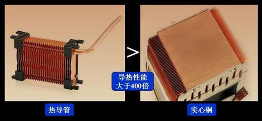 熱管主要是靠工作介質(zhì)相變時吸收和釋放汽化潛熱的循環(huán)來傳遞熱量,由于介質(zhì)的汽化潛熱很大,同時熱阻極低,所以熱管的導熱率極高,通常情況下,導熱能力要比實心銅高400倍。