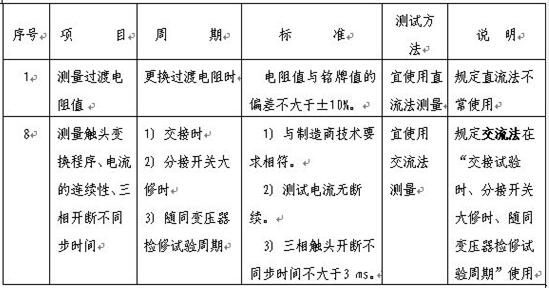 為了解決分接開(kāi)關(guān)現(xiàn)場(chǎng)試驗(yàn)問(wèn)題,電力研究單位進(jìn)行了大量的研究和現(xiàn)場(chǎng)試驗(yàn)工作,將交流測(cè)試技術(shù)應(yīng)用于分接開(kāi)關(guān)現(xiàn)場(chǎng)試驗(yàn),獲取了必要的試驗(yàn)數(shù)據(jù),積累了一定經(jīng)驗(yàn),并制定出電力行業(yè)新標(biāo)準(zhǔn)《DL/T265-2012變壓器有載開(kāi)關(guān)現(xiàn)場(chǎng)試驗(yàn)導(dǎo)則》。制定新標(biāo)準(zhǔn)的目的在于,規(guī)范高壓試驗(yàn)專(zhuān)業(yè)分接開(kāi)關(guān)現(xiàn)場(chǎng)試驗(yàn)項(xiàng)目、試驗(yàn)方法、缺陷判斷標(biāo)準(zhǔn)、分析方法,對(duì)各類(lèi)有載分接開(kāi)關(guān)投運(yùn)前及按檢修試驗(yàn)周期進(jìn)行有效試驗(yàn),準(zhǔn)確判定分接開(kāi)關(guān)的動(dòng)作特性,可靠發(fā)現(xiàn)分接開(kāi)關(guān)切換過(guò)程中的異常情況,準(zhǔn)確判定分接開(kāi)關(guān)缺陷。新標(biāo)準(zhǔn)對(duì)測(cè)量變壓器有載分接開(kāi)關(guān)的測(cè)試方法、測(cè)量項(xiàng)目、測(cè)試周期做出了明確規(guī)定。