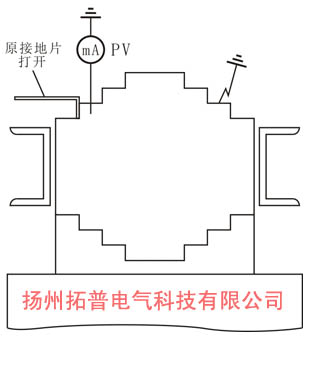 3)交流電流法。在變壓器低壓繞組通入交流電壓220~380V,此時鐵芯中有磁通流過。如果有接地故障,用毫安表測量會有電流。當毫安表沿鐵軛各級逐點測量,毫安表指示電流為零時,該處為接地點。