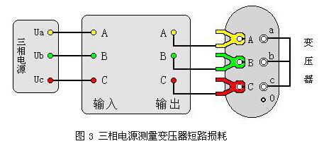 (2)三相三線電源測量變壓器短路損耗: