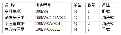4.1變頻串聯(lián)諧振試驗(yàn)裝置系統(tǒng)參數(shù):