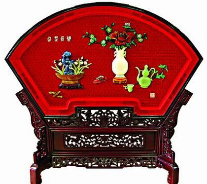 《松齡鶴壽》骨石鑲嵌屏風、雕漆嵌玉《玉堂春色》等眾多代表作品被國家作為禮品贈給外國友人。