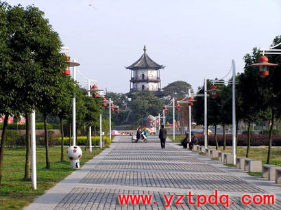 廣場設(shè)計遵循“以人為本、以水為源、以綠為美”的原則,注重高郵水鄉(xiāng)的地域特色。在整體布局上采用“一軸二面三點”,即以“景觀主軸線,蝶池小面、蝶園主廣場,入口商業(yè)休閑廣場、親水廣場、宋城墻魁星閣古跡”為主體,水上平臺和引橋流水融為一體,使人感受到水鄉(xiāng)特有的水性的滋潤。廣場綠化設(shè)計充分體現(xiàn)“花香蝶自來”的意境,種植花草樹木近40個品種,其中有櫸樹、香樟、桂花、梅花、天堂草等,錯落有致。駐足看,廣場綠草如茵,彩蝶飛舞,彩色噴泉千姿百態(tài);徐行聽,流水淙淙,舞曲翩翩,綠樹叢中鳥啼鶯囀,讓人心曠神怡。