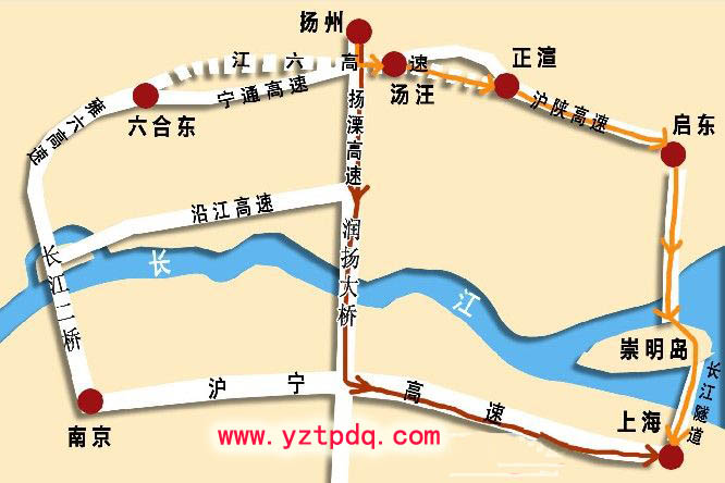 江六高速公路起于揚州市江都市仙女鎮(zhèn)正誼互通,與江都至廣陵高速公路順接,然后向西經(jīng)江都市仙女鎮(zhèn),揚州市邗江區(qū)、廣陵區(qū)接老寧通公路揚州南繞城段湯汪互通處,過蔣王鎮(zhèn)八字橋樞紐互通后經(jīng)儀征市,達到我市六合區(qū)接雍六高速六合東互通處。