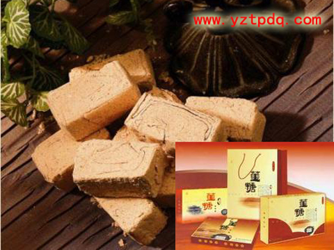 董糖又叫酥糖或叫董酥糖。秦郵董糖是揚州高郵的傳統(tǒng)名特產(chǎn)品,已有三百多年歷史。用糯米粉、芝麻、白糖、麥芽等原料,手工精制而成,拆開包裝紙,米黃色的董糖便呈現(xiàn)在你的眼前。每塊有48層軟片組成,厚薄均勻,層次分明,口味純正,入口酥軟,味美香甜,老少皆宜是節(jié)日饋贈佳友的首選禮品。