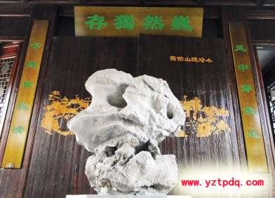 “這是一塊小玲瓏山館的遺石,姿態(tài)優(yōu)美,玲瓏有致,‘皺、透、漏、瘦’皆備,唯一遺憾的是只剩上半截。這一石頭是街南書屋的鎮(zhèn)宅之寶,為當年馬氏兄弟所有??登觊g,馬氏兄弟是揚州舉世聞名的儒商,這塊高達兩米的太湖巨石,相傳為甘泉縣令龔鑒所贈。”有關專家介紹說,“這塊石頭剛從史可法紀念館運回,安放在才修復的‘十二景’之一看山樓內,回歸故園的玲瓏石將成為修繕復原后的‘十二景’中一道充滿傳奇色彩的風景。”