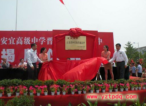 寶應(yīng)安宜高級中學(xué)歡歌笑語,彩旗招展。一場盛大慶典,宜中晉升“省四星”級高中揭牌儀式在校園內(nèi)隆重舉行。在創(chuàng)建四星級學(xué)校的濃熱氛圍中,學(xué)校環(huán)境優(yōu)美,充滿生機(jī),到處一片“園林化、生態(tài)化、人文化”氣息。其發(fā)展速度之快,令人驚喜。