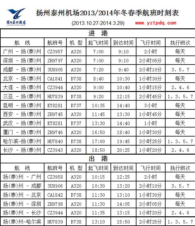 每年10月下旬開(kāi)始,機(jī)票市場(chǎng)進(jìn)入傳統(tǒng)淡季,因此每年10月底也進(jìn)入民航冬春航班換季的重要時(shí)刻。近日,從民航總局獲悉,2013年冬季至2014年春季全國(guó)民航航班換季工作準(zhǔn)備就緒,新的航班計(jì)劃將自2013年10月27日起執(zhí)行。揚(yáng)州泰州機(jī)場(chǎng)提醒消費(fèi)者注意根據(jù)航線與價(jià)格變化,及時(shí)調(diào)整出行計(jì)劃。