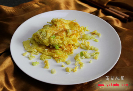 這道菜的關(guān)鍵在選料和火候,一定要選最鮮嫩的蒲菜芯;中火攤到雞蛋餅略微變色即可出鍋,攤老了蒲菜失去水分,清新的汁液和脆爽的口感會流失。