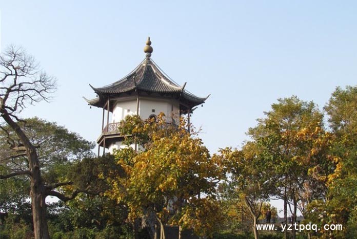 奎星閣建于城墻之上,為磚木結(jié)構(gòu)樓閣式,三級八面,高20米。第一層北面開門,二、三層四面有門。每層閣樓頂板上均有彩繪,或龍或鳳或蝙蝠,寓意吉祥幸福。登樓四望,視野開闊,高郵美景盡收眼底。登樓觀景,成為古代高郵文人的一大雅好。奎星閣四周遍植名木,其中一棵古松至今已有500多年歷史,老干虬枝,蒼勁挺拔。