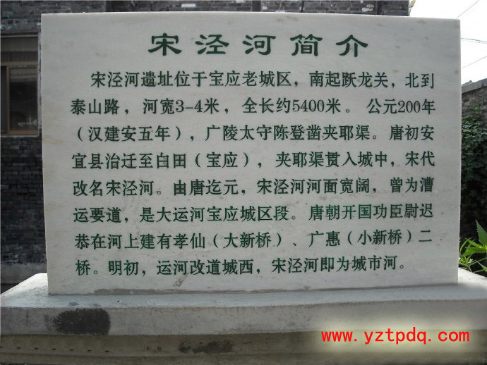 宋涇河,是古運(yùn)河的一部分,至今已有二千多年的歷史。唐武德四年(621年),安宜縣治遷入白田(即今寶應(yīng)城)之前,運(yùn)河從邗溝經(jīng)射陽湖,沿漢陳登開筑的夾耶貫穿鎮(zhèn)中。隋初又開通了大業(yè)邗溝。