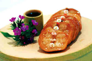 明清時(shí)期,寶應(yīng)白蓮藕粉被列為皇室貢品,有“鵝毛雪片”之稱;寶應(yīng)藕菜“蜜餞捶藕”滿譽(yù)江淮,為四方賓客所稱道。當(dāng)時(shí)寶應(yīng)名士喜好 藕菜,產(chǎn)生了“全藕席”,室供碗蓮盆景,壁掛荷花詩(shī) 畫,席中放一花瓶,以清水插鮮荷花數(shù)朵,色香味具全, 頗具雅趣。當(dāng)今揚(yáng)州的“全藕宴”列為寶應(yīng)十大名菜之首,給您帶來清淡、涼爽、馨香的感受。